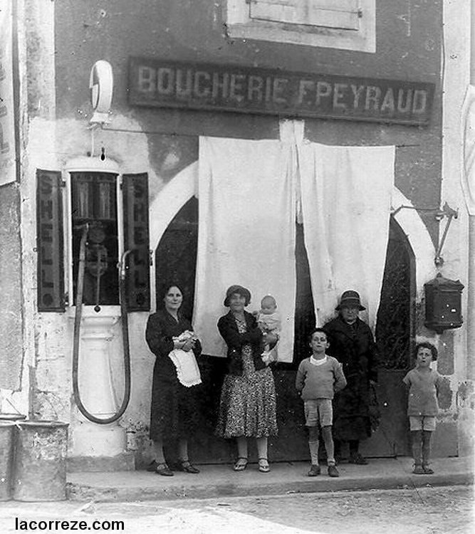 pause devant la boucherie Peyraud et la pompe à essence