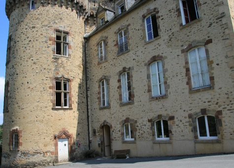 Les façades ouest du corps de logis qui date de 15e siècle sont flanquées de deux tours polygonales comportant des des toitures en pavillon, entre deux tours rondes coiffées de toitures en poivrière; le corps de logis et les tours sont surmontées d'un chemin de ronde sur mâchicoulis. Les façades est elles datent du 19 siècle, il reste du château féodal, le groupe des tours Sud et, au Nord, la tour carrée.