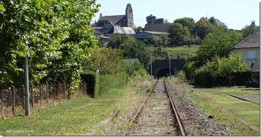 Les travaux du tunnel qui passe sous le village ont commencés le 4 février 1873 et achevés le 4 mars 1875. Il a une longueur de 212 m et une hauteur de 6 m. L'entrée du tunnel côté gare imite l'architecture des châteaux forts (tours rondes et ligne de faux mâchicoulis). Le tunnel a été dimensionné pour permettre le passage d'une seconde voie. Mais ce projet a été abandonné en raison de la construction de la ligne Limoges-Brive par Uzerche, de 1886 à 1892, à deux voies.