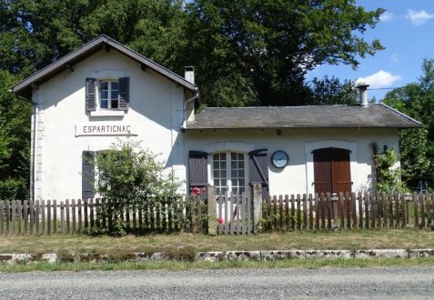 La halte comportait une petit logement à étage et deux salles de service dans un corps de bâtiment annexe. Le corps principal du bâtiment étant similaire aux maisons de garde . Les deux salles de service, en rez-de-chaussée, comportaient 2 portes de service: salle d'attente et chef de station. Sur l'arrière, un petit appentis est réservé aux toilettes. Villages et lieux concernés : Espartignac , Uzerche Ville , Affieux , Saint Sylvain , Laguenne et Pont de Peyrelevade . Les quatre dernières étaient associés à un passage à niveau
