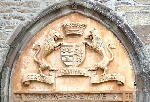 Le tympan de la porte du château s'orne d'une très belle sculpture : blason aux armes des barons de Lavaur.